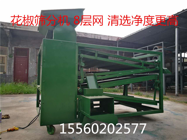 2 花椒篩采用脫枝打糍與多層不同樣式篩板組合而成,對枝,籽,殼,土等雜質快速分離節約勞動力。