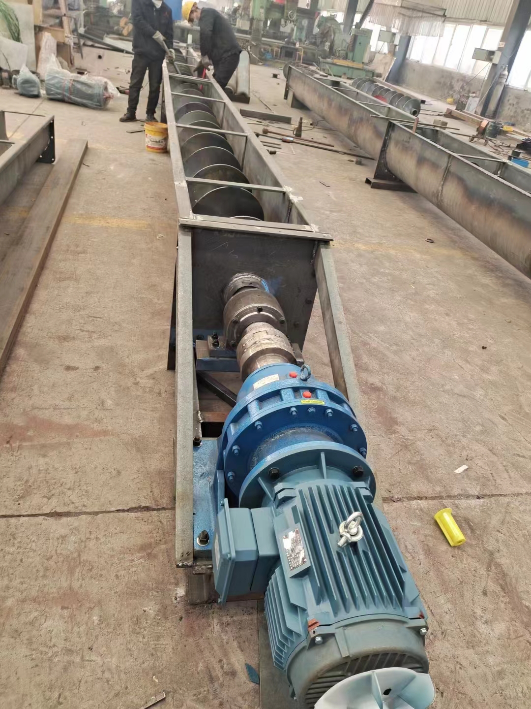 今天接到電話。洛陽一個客戶咨詢我們螺旋輸送機??蛻糨斔偷奈锪厦悍?。輸送量不大。我們的技術給客戶設計了一臺U型螺旋輸送機。型號:LX250-7米螺旋輸送機,客戶要求輸送距離是7米長。我們技術設計的箱體總長7.5米。輸送機箱體的板厚3mm、電機配的是4KW電機。減速機是BWD-2型。歡迎有需要的客戶來電咨詢我們。聯系電話:15560202577(同微信)